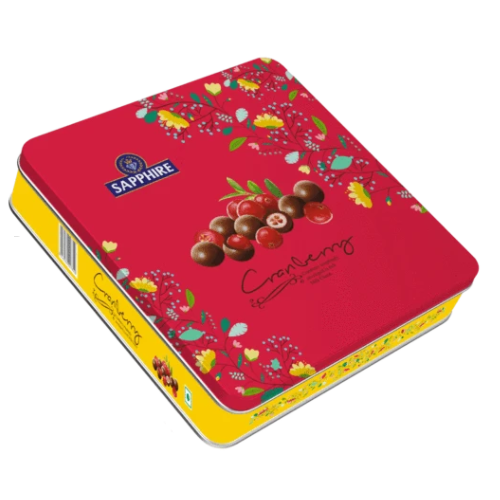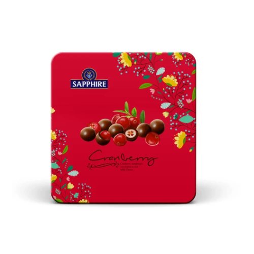 - All ages love chocolate covered cranberries. Cranbeerries are enclosed inside a beautiful tin box. Make a memorable gift that your loved one can reuse for eternity and think of you.